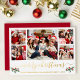 Modern Calligraphy Gold Foil Script 5 Photo Family Photo Collage Merry Christmas Card includes Watercolor Christmas Holly Berries - Red Back
