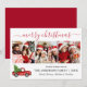 Calligraphy Merry Christmas Red Truck 3 Photo Holiday Card