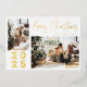 A Christmas holiday card featuring a gold foil calligraphy lettering of "Merry Christmas", editable texts and two photos.