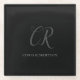 Calligraphy Monogram Name Black Grey Custom Gift Glass Coaster