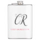 Calligraphy Monogram Name Black Grey Custom Gift Hip Flask