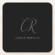 Calligraphy Monogram Name Black Grey Custom Gift Square Paper Coaster