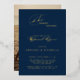 An elegant gold foil against navy blue The Night Before Rehearsal Dinner announcement adorned with a swirling wisp of calligraphy creates the perfect announcement for family and friends. Easily customise the front and back with your details including a photo to make it your own.