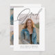 Calligraphy Photo Budget QR Wish List Graduation Invitation features one photo on the front and two photos on the back along with graduation invitation details and a QR code for your graduate's wish list!
