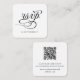 Modern elegant calligraphy design with QR code on the back and website address. There are customisable options for different types of paper and sizes.