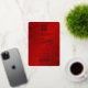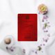 This modern Chinese wedding invitation features a real gold foil double happiness symbol with hearts and a calligraphic wedding headline on a shimmering red background.