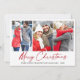 Modern Minimalist Elegance Calligraphy Ink Pen Handwritten Script Merry Christmas 3 Photo Holiday Card - Red Script