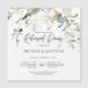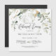Design features Rehearsal Dinner wording in a modern calligraphy script surrounded by gold accented eucalyptus greenery. Easily customise with important information of choice to make it your own.