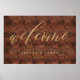 Calligraphy Rustic Wood & Gold Welcome Wedding Poster