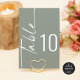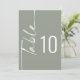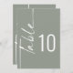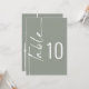 Calligraphy Sage Wedding Printable Table Number. Available digitally and printed. Table is set in a styiish rotated script to the left and your table number to the right. Easily personalise the number and add each number to your cart separately as you change it. The same design is on the other side and will update simultaneously as you make your change to the number.
