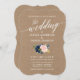 Calligraphy Script Blue Pink Floral Wedding Kraft Invitation