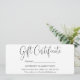 Modern Minimalist Calligraphy Script Business Gift Certificate with Envelope. Black & White. Rounded Edges.