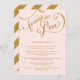 NOTE: This is a flat printed image, there is no actual glitter, gold metallic ink or layers. COLOR PALETTE: Gold metallic look and blush shell pink DESIGN COLLECTION: A formal dinner wedding reception menu listing the entree choices and dessert. Created using hand lettered script scroll calligraphy by Audrey Jeanne Roberts. The text reads "forever in Love" and has scrolling swirl flourishes to add a touch of modern elegance. On the reverse side is a wide diagonal stripe also in golden glittering sparkle. Your personalised invitation wording can easily be customised with the simple template fields provided. Available in silver and gold glitters with any colour background. Just contact us and we'll match your wedding colour.