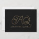 An elegant ornate and artistic chic gold monogram with flourished calligraphy script typography on a black background, elevates your initials to a unique and dramatic design element. Try out your own initials in this dramatic flowing calligraphy style. The back of the card is white to allow for writing notes.
