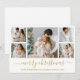 Modern Calligraphy Script Merry Christmas 5 Photo Holiday Card - Gold Script