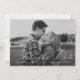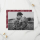 Announce your upcoming nuptials in style with our white calligraphy script save the date cards. The elegant save the dates display your horizontal engagement photo with "Save the Date" in a white calligraphy script. Personalise the front of the photo save the date by adding your names, wedding date, and city/state. The card reverses to display a white foliage pattern with a burgundy background or colour of your choice.