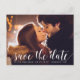 Whimsical and elegant save the date postcard featuring white modern calligraphy. Similar items and other colours are available.