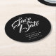 Calligraphy Script Save The Date Invitation Round Paper Coaster