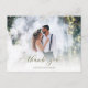 This design features a modern simple elegant calligraphy script, a minimalist minimal two 2 photo, a wedding photo photography couple, a basic clean contemporary template, an elegant typography script text font, a photo wedding thank you cards, a custom customised personalised design, a golden handwritten lettering font, a creative simplistic elegant script, a calligraphy wedding thank you budget-friendly vellum overlay effect postcards.