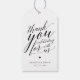 The quality and weight of the paper used was excellent. I love the feminine floral design. I gave received so many compliments on the unique cut of the tag. I also use these tags as a business card. This is my 3rd time ordering this design. I love it! I was very pleased with the printing. I was excited that I was able to print separate messages on both sides of the tag. Very clean look.