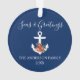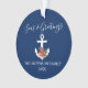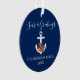 Stylish Calligraphy Script Nautical Seas & Greetings Navy Blue Ornament. Anchor topped with Watercolor Floral including red poinsettias, pine cones and other beautiful winter greenery.
