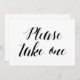 Simple and elegant black and white calligraphy style "Please take one" wedding sign.