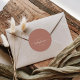 This calligraphy terracotta baby shower favour sticker is perfect for a rustic baby shower. The simple and elegant design features classic and fancy script typography.