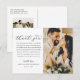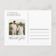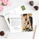 This elegant half-and-half thank you postcard features ornate calligraphy script on the left alongside your wedding photo on the right, creating a beautifully balanced design. The editable message block, "with love" closing, and couple names and date are all fully customisable. A sophisticated choice for couples who love classic calligraphy paired with a personal photo touch.