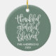 Calligraphy Thankful Grateful Blessed Ornament - Family Name and Year - Sage Green