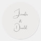 The sticker is made on wonderful paper and had no problem sticking to the bag that I purchased to put it on. I wanted to find a design that would be cute for the bride and groom and this one fit the bill as it has cute "bees" buzzing around and the wedding was taking place in a town called "Bee Cave". The packaging was great and protected the stickers. The website is easy to navigate and there are so many color choices. I had no problem finding a color that the bride was using on everything else selected. The design was adorable and there were many to choose from. You can make the figure as larger or smaller and you can place the photo and writting whereever you want to in the sticker. The printing is fabulous..better than expected.