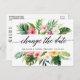 Modern Calligraphy Script Watercolor Tropical Floral Change The Date Wedding Postponed New Date Announcement Postcard features tropical flowers and greenery