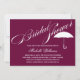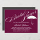 © Socialite Designs. Our beautiful calligraphy bridal text, with white text on plum background, and umbrella design element add a touch of simple elegance to this bridal shower invitation. The back has a contrasting grey colour. Easily replace our template text for your special event.