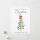 Calligraphy Watercolor Christmas Tree Red Bow Holiday Card