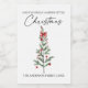Calligraphy Watercolor Christmas Tree Red Bow Mini Wine Label
