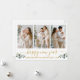 Modern Calligraphy Script Happy New Year 3 Photo Holiday Card includes Watercolor Eucalyptus Leaves. Gold Text.