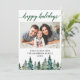 Modern Elegant Calligraphy Script, Watercolor Pine Trees, Happy Holidays Family Photo Holiday Card - Green Script