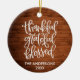 Calligraphy Thankful Grateful Blessed Ornament - Family Name and Year - Rustic Country Wood Print