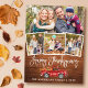 Rustic Wood Fun Calligraphy Script Watercolor Vintage Red Truck with Pumpkins and Autumn Leaves - Happy Thanksgiving 4 Photo Postcard