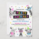 Calling all party animals! Enjoy this colourful party animal birthday invitation featuring a lion, zebra, elephant and giraffe! It's the perfect way to invite guests to your child's party animal themed birthday party. This is a fun, neon and black styled wild one invitation!