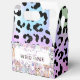 Personalise these vibrant calling all party animals jungle safari birthday party gable favour bags with your own wording easily and quickly, simply press the Edit Using Design Tool button to further re-arrange and format the style and placement of the text. Featuring cute jungle animals wearing colourful glasses and party hats, leopard patterned balloons and a vibrant leopard print in purple, pink, blue and green hues. These gable thank you favour boxes are available in 3 different sizes. For a seamless and coordinated look, explore our range of matching items available in-store. (c) The Happy Cat Studio