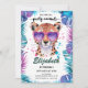 Calling all party animals! Get ready for a wild celebration for Elizabeth, who is turning four! This fun and vibrant invitation features a super cool watercolor leopard rocking a pair of pink heart-shaped sunglasses. Framed by a border of lush, tropical leaves in shades of teal, blue, and purple, this design is perfect for a wild, jungle, or safari-themed birthday bash. The playful script and colourful paint splatters add to the fun, festive feel. All party details are fully customisable.