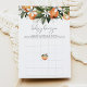 This baby shower bingo game features watercolor orange blossoms and fun script font. This invitation is the perfect addition to your gender neutral little cutie on the way shower.