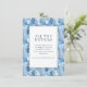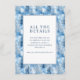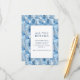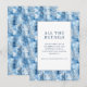 This wedding enclosure card features a serene winter theme with stylised blue trees creating a wintery forest backdrop. The central white square, framed by a thin blue line, highlights the elegant serif typography that guides guests to further details online. The colour palette of various blues evokes a calm and inviting atmosphere, perfect for setting the tone for a sophisticated event. The minimalist design focuses on clean lines and flat colours, making it both modern and timeless. Ideal for weddings, this card combines functionality with aesthetic appeal, ensuring all important information is presented in an attractive manner.