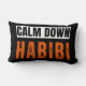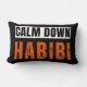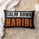 Calm Down Habibi pillow home decor by Arabix. Funny arab saying calm down habibi in black, white and orange for your bedroom, living room, dorm, etc. Calm down habibi for yourself or as a gift for a friend.
