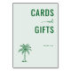 This wedding tabletop sign features a minimalist design with a calming light green background and darker green accents. The layout includes bold, uppercase text reading "CARDS and GIFTS" with an elegant cursive "and," complemented by a smaller "Thank You" below. A simple palm tree illustration adds a tropical touch to the modern, understated aesthetic. The clean lines and negative space create a serene atmosphere, perfect for expressing gratitude at your special event.