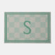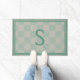 Calm Seafoam Green Grey Plaid Monogram Doormat