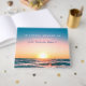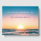 Memorial service guest book, perfect for a nautical funeral, with a photo of a sun setting over the ocean.