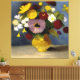 Calm Watercolour Flower Print. Find serenity in simplicity with this stylised watercolour vase of flowers. Delicate yellows, blues, lilac and maroon create a calming presence.
