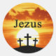 The holy name of Jezus on a beautiful impressionist style background of Calvary at sunrise