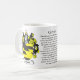Calvert Family Coat of Arms (Crest) including the History and Meaning of the Calvert name on a ceramic coffee/tea mug. Each mug has two images of your Coat of Arms (one on each side) and the history and meaning of the Calvert name (in the middle).The ceramic mug is microwave and dishwasher safe. You can now proudly display your heritage while sipping your beverage, or use it as a conversation piece. They also make great gifts for friends and family. This image can be used on any other Zazzle mug and stein products. For more information or with your comments send email to heraldry505@gmail.com
